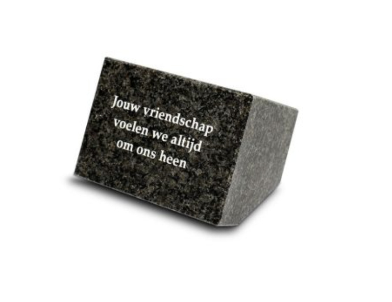 Artikelnummer: A132G OverzichtGeef een blijvende herinnering met dit grafmonumentje van graniet. Dit elegante, kleine monumentje van 8x11x8cm cm is perfect om als aanvulling op bestaande teksten op het graf te plaatsen. Het biedt een intieme manier om je gedachten en gevoelens te uiten, en helpt bij het gedenken van jouw dierbare(n).