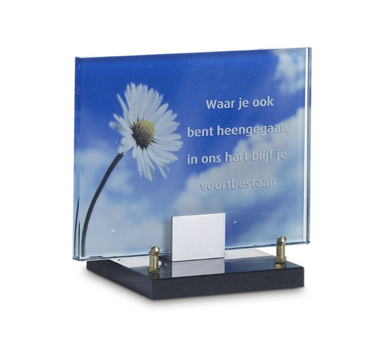 Monument Glas, madelief, 18x23 cm en met eigen tekst