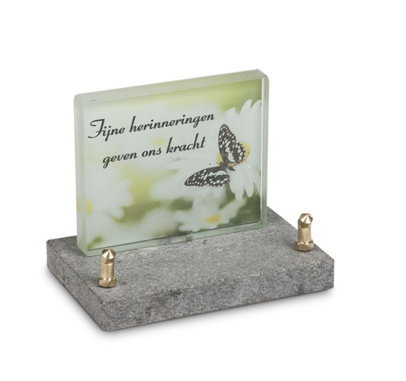 Monument Glas, vlinder, 10x12 cm met eigen tekst